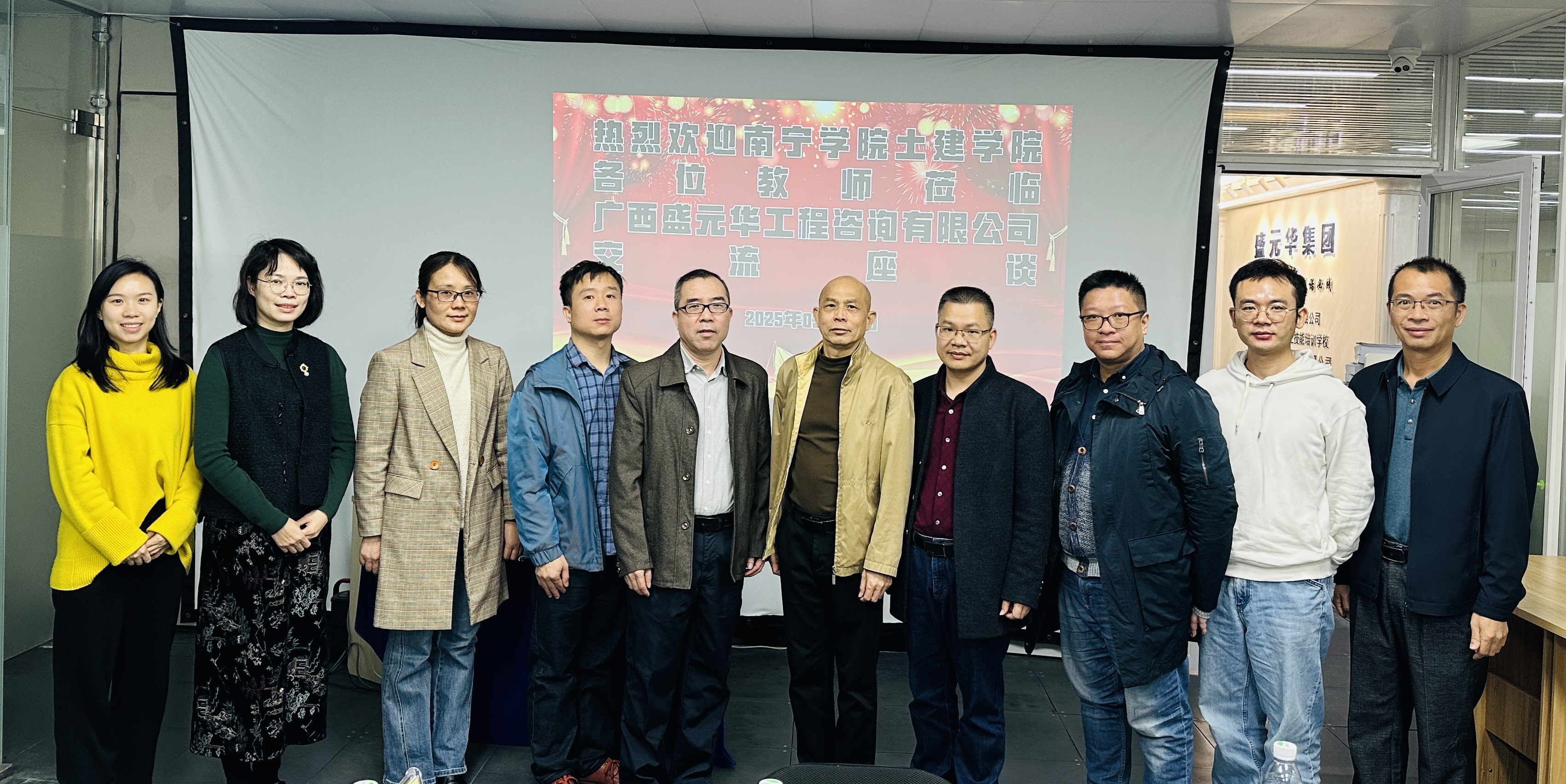 3月19日上午,南寧學(xué)院土木建設(shè)工程學(xué)院教工支部書記楊劍、副院長助理陶月平、工程造價專業(yè)專任教師孔德輔、韋麗、李欣欣一行蒞臨廣西盛元華集團總部開展交流活動。